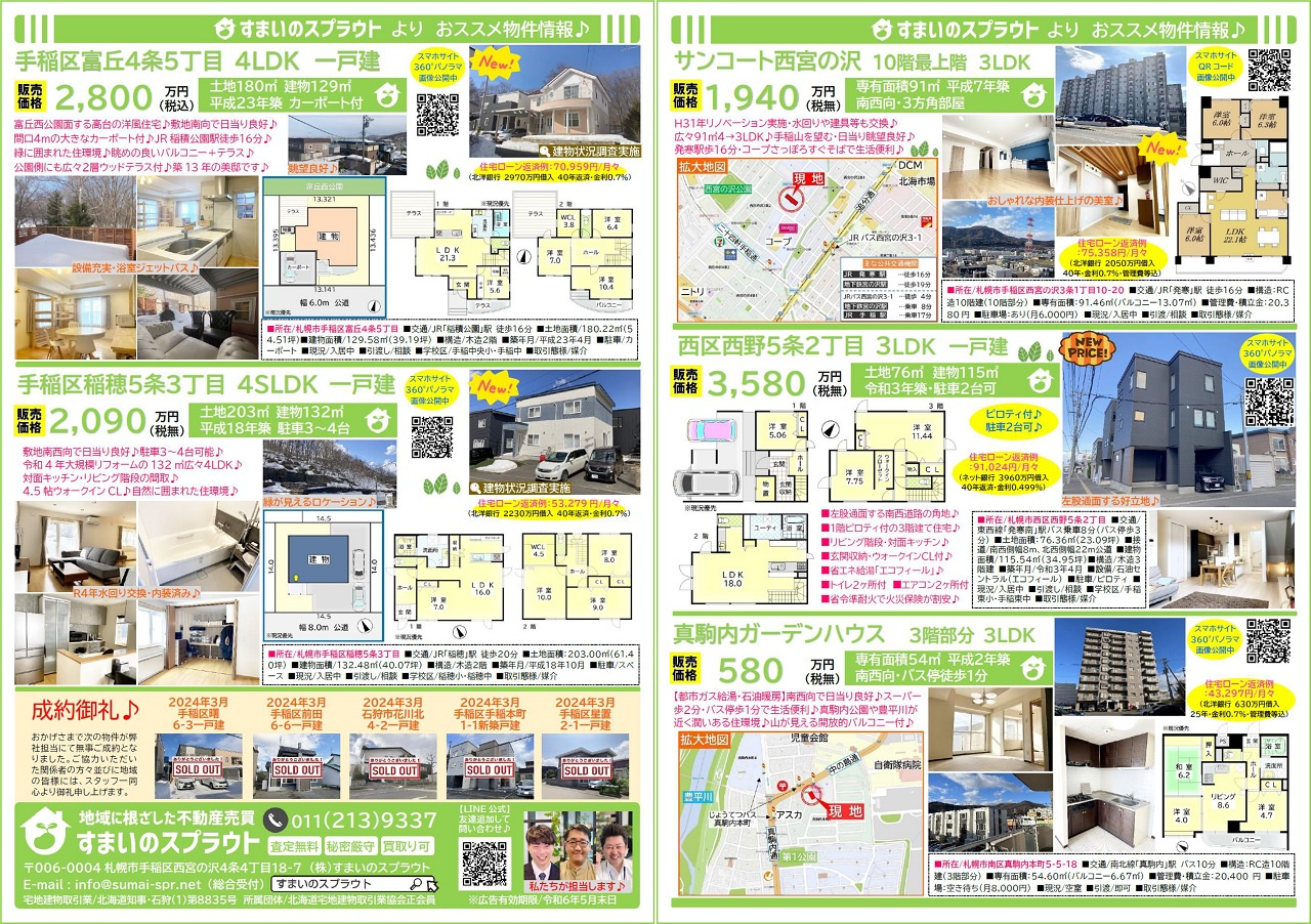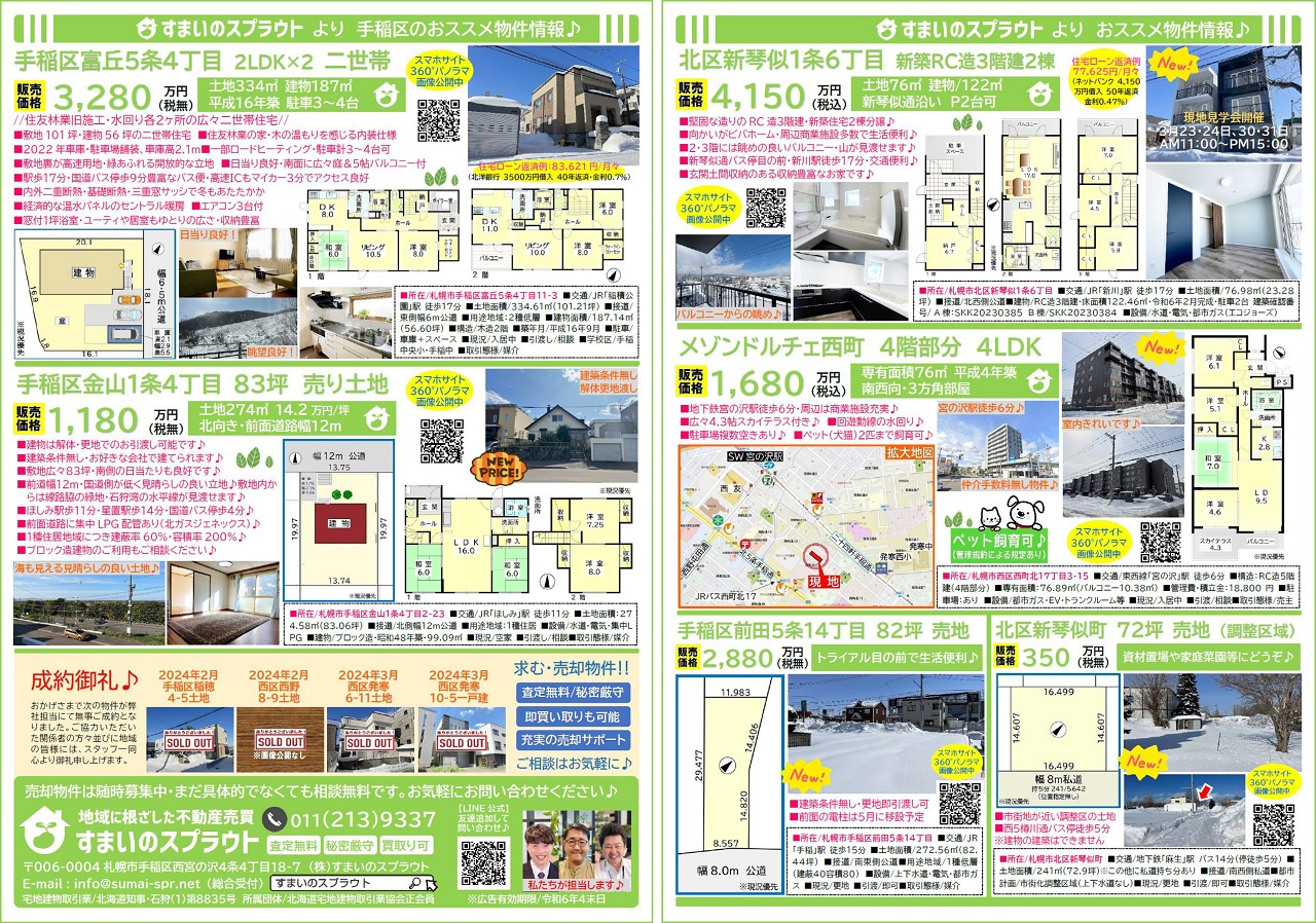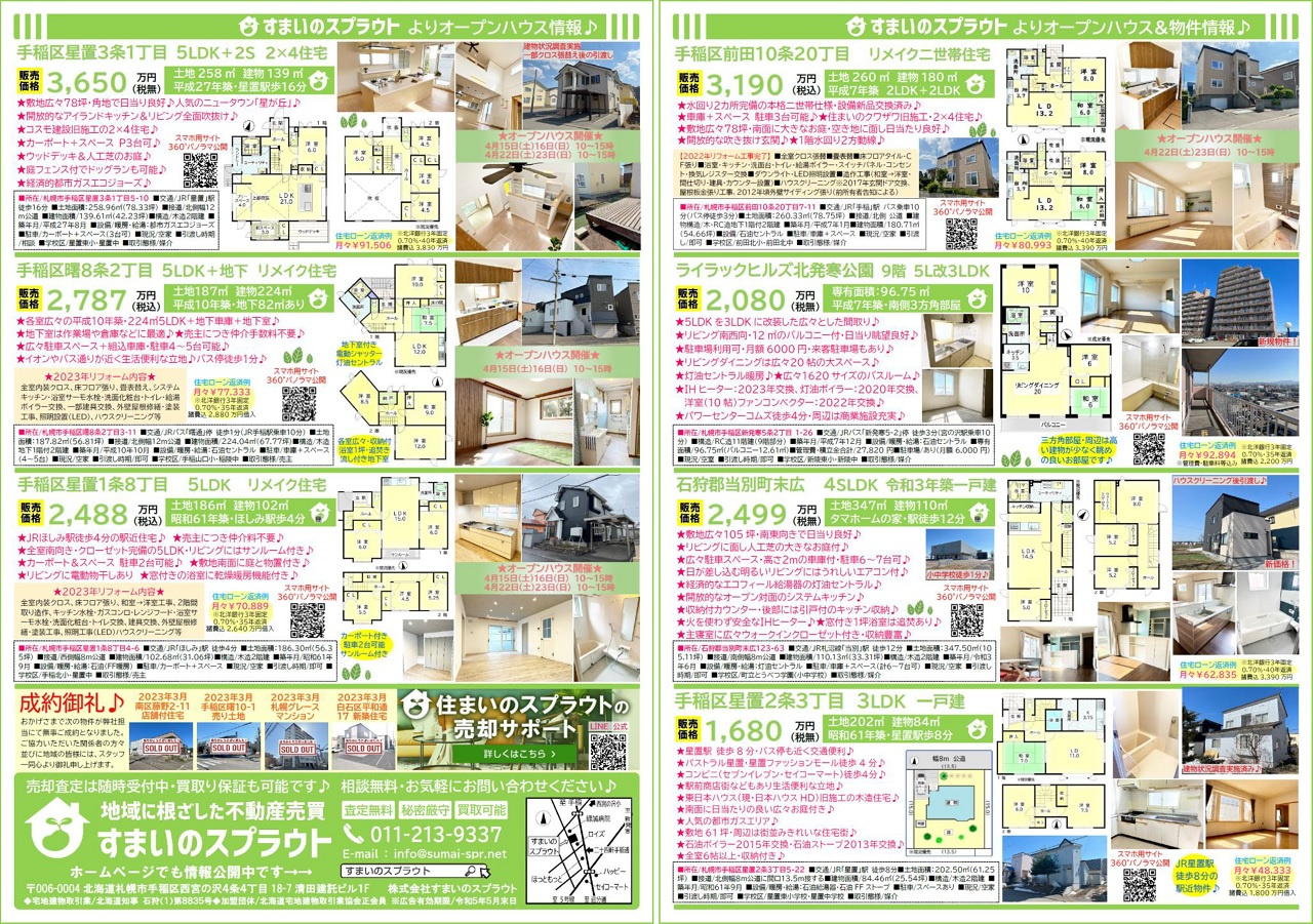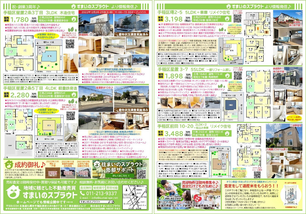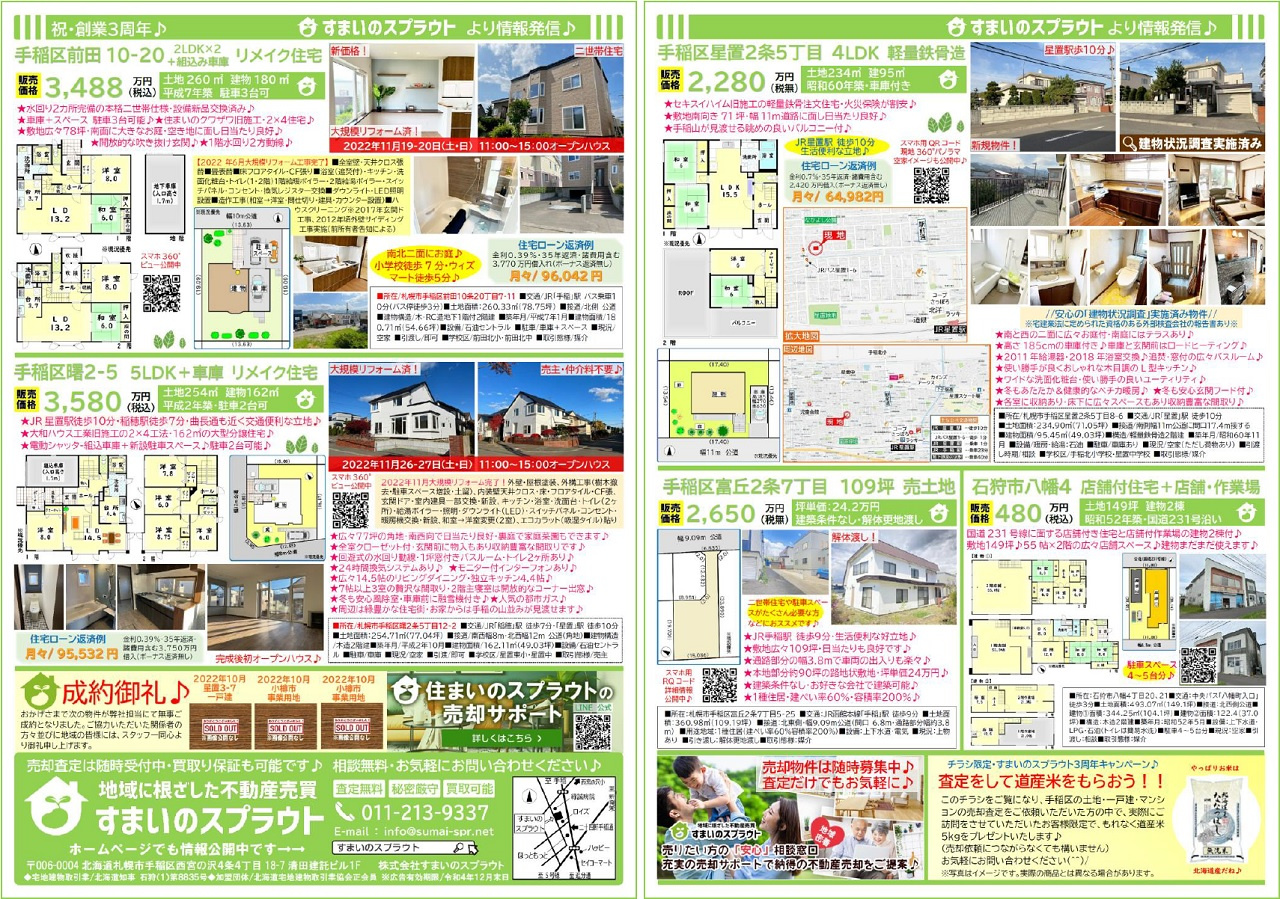 手稲区の不動産売却|株式会社すまいのスプラウト > 株式会社すまいのスプラウトのスタッフブログ記事一覧 > 実施済チラシ集③
