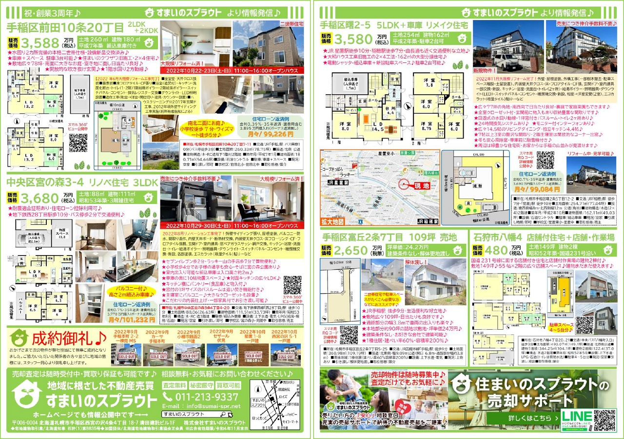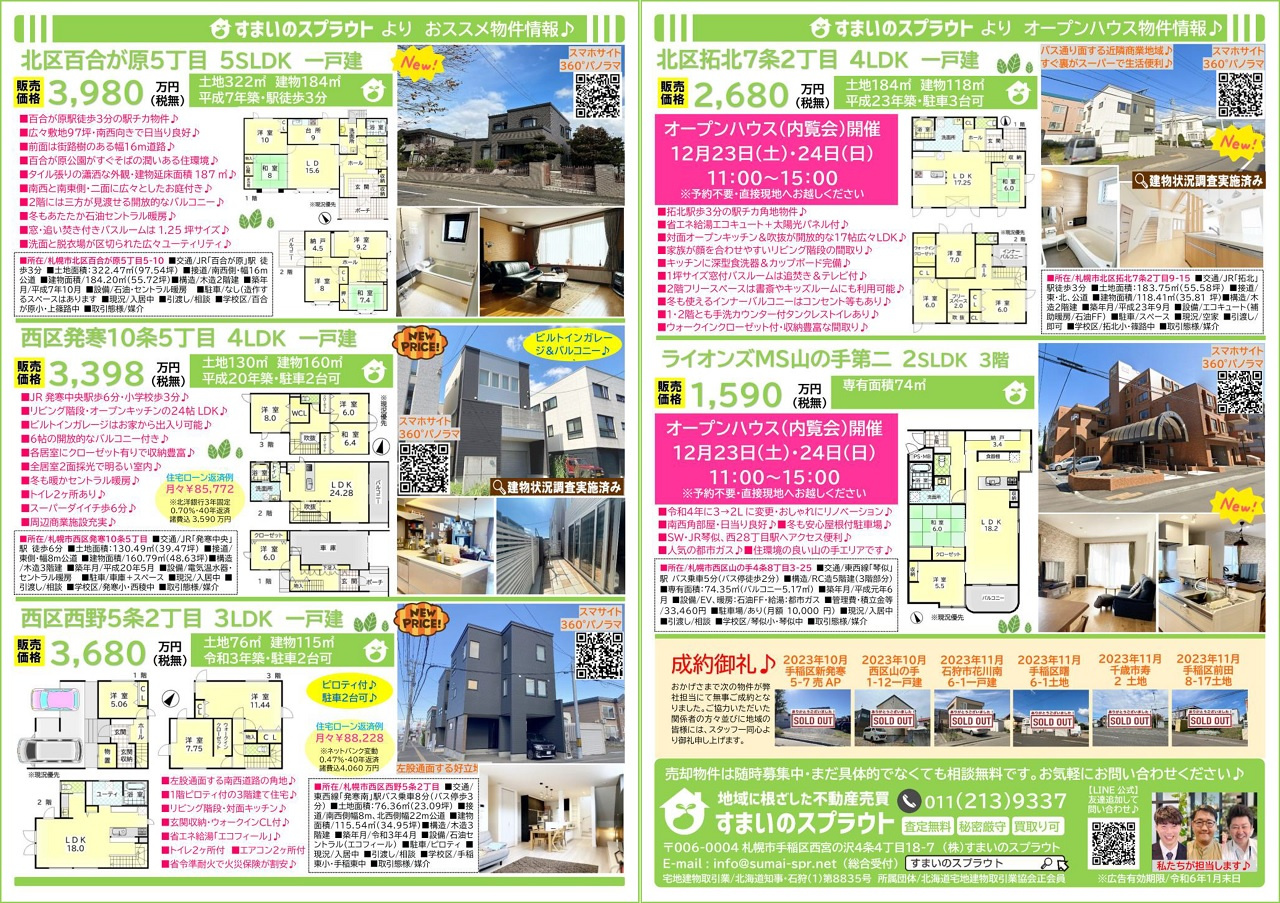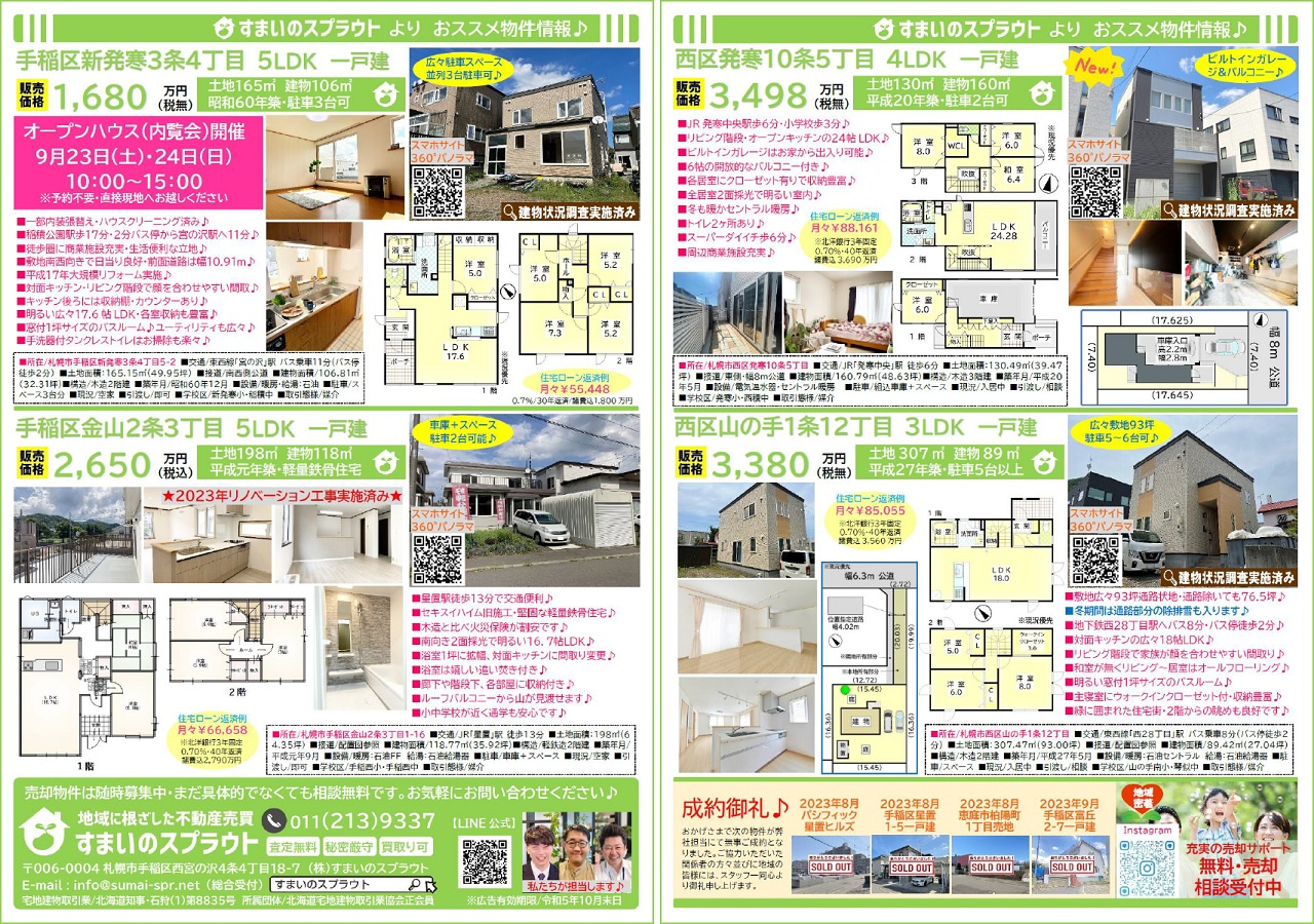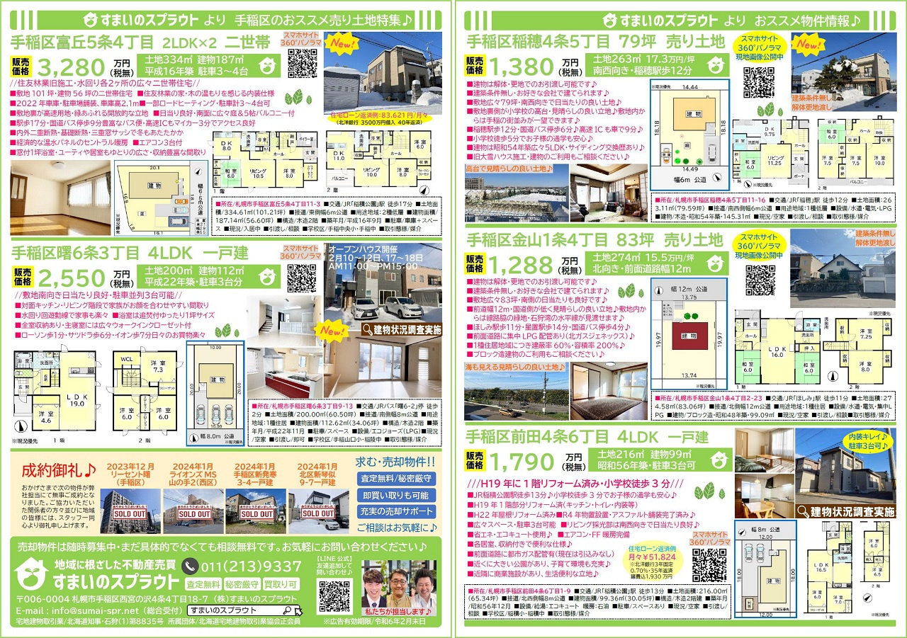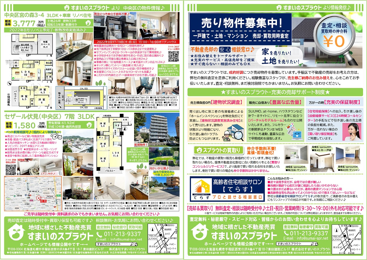 手稲区の不動産売却|株式会社すまいのスプラウト > 株式会社すまいのスプラウトのスタッフブログ記事一覧 > 実施済チラシ集③