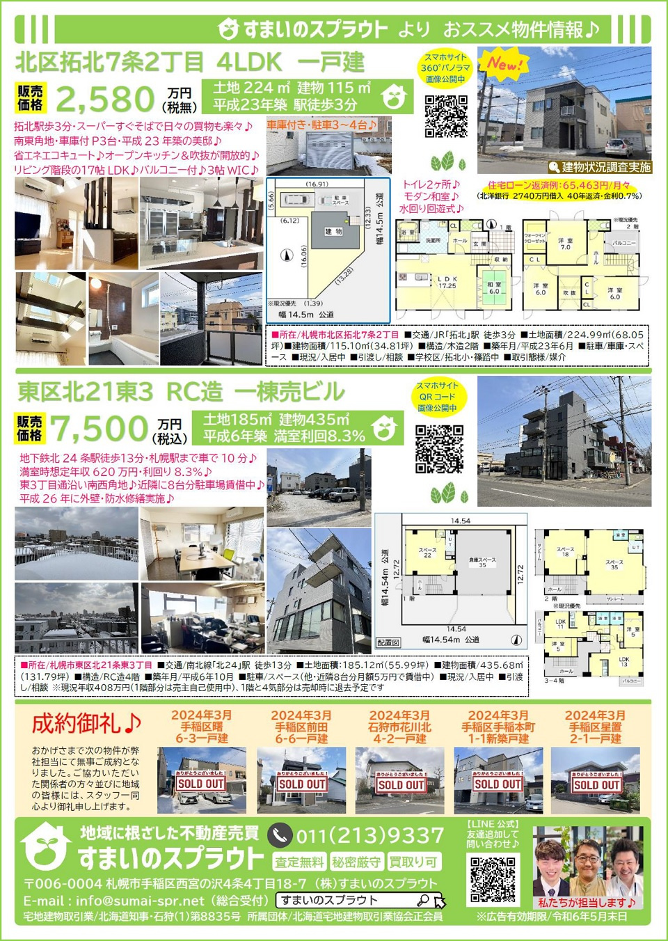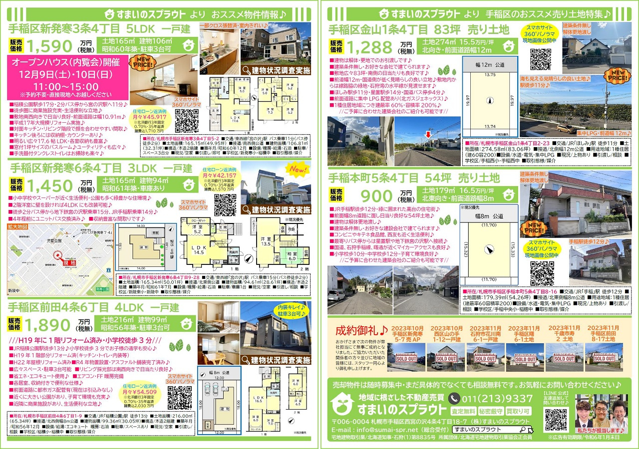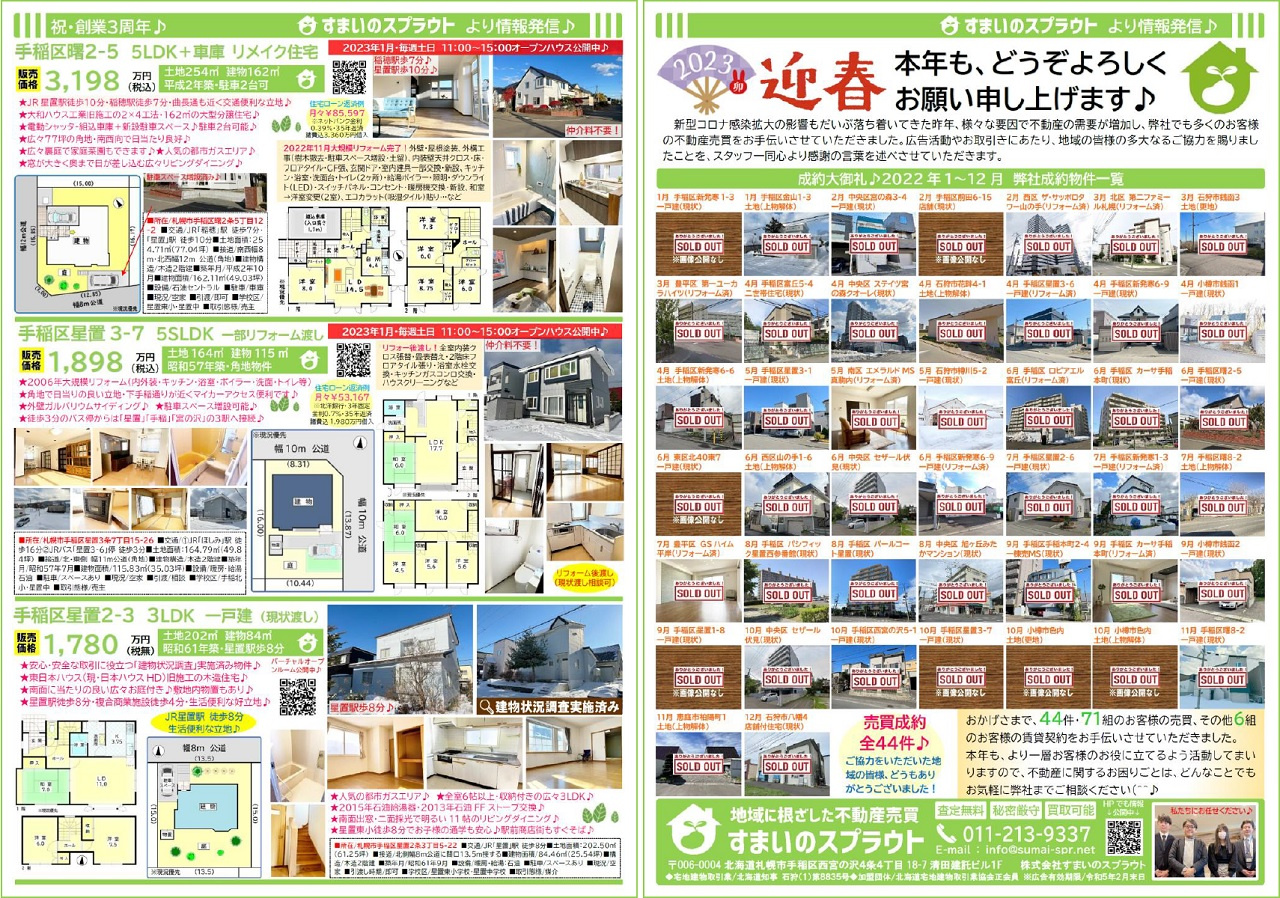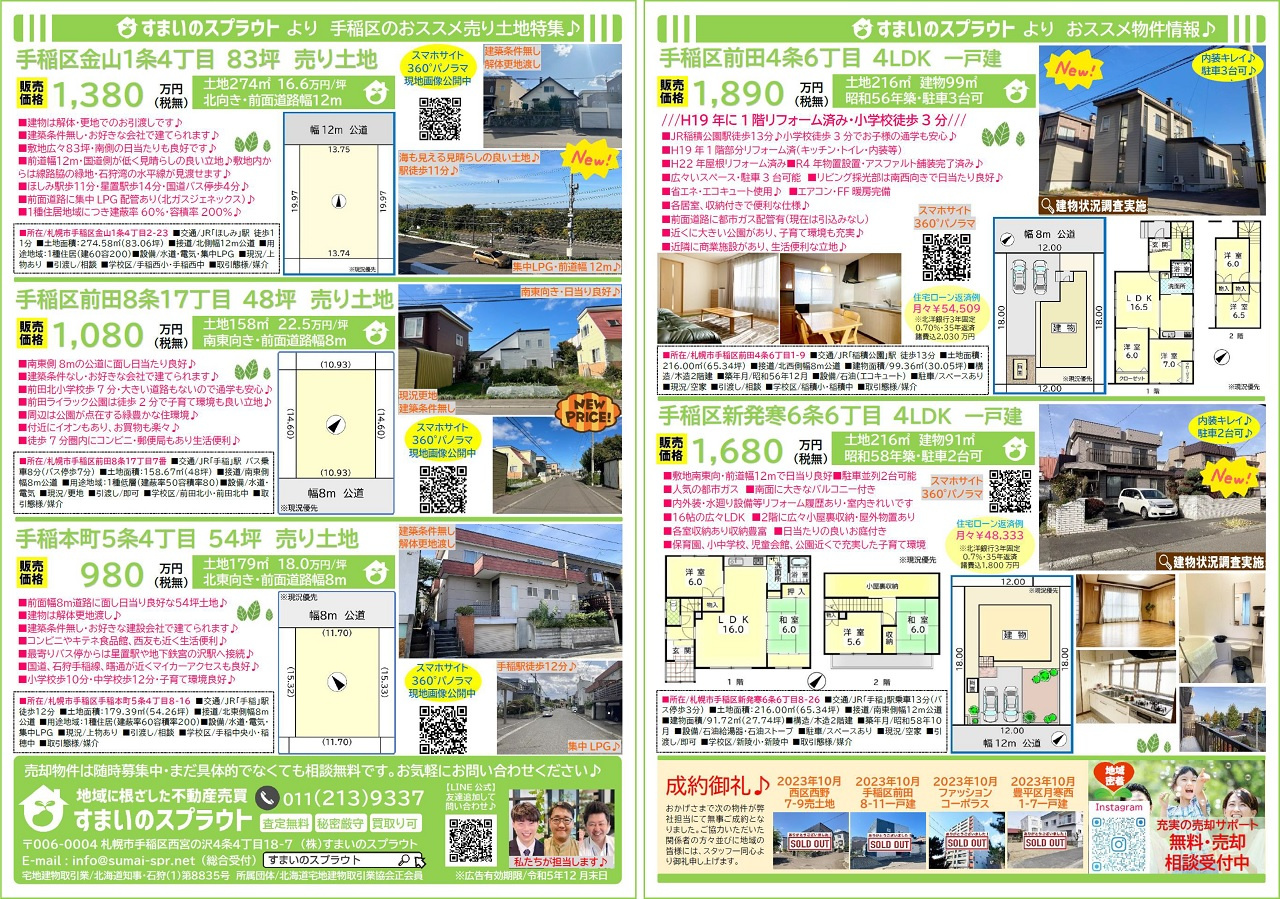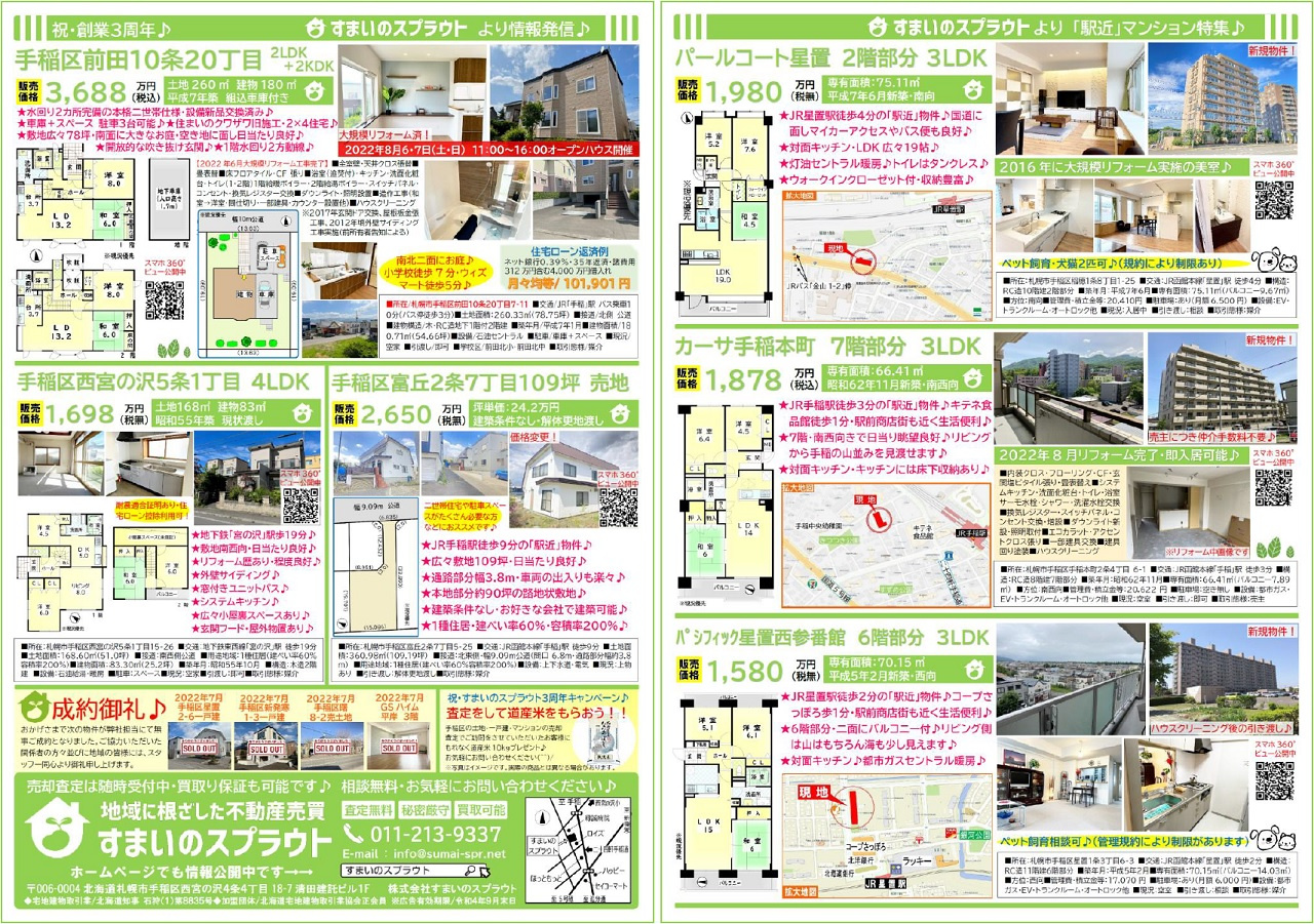 手稲区の不動産売却|株式会社すまいのスプラウト > 株式会社すまいのスプラウトのスタッフブログ記事一覧 > 実施済チラシ集③